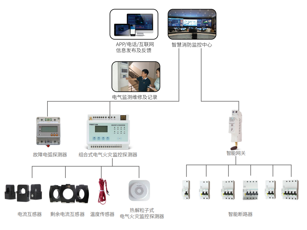 尼特智慧用電安全監控系統采用檢測電氣線路剩余電流、電壓、電量、故障電弧、線路的溫度的手段進行電氣火災監控。實時接收聯網單位監測線路中的剩余電流、電壓、電量、故障電弧、溫度變化等信息,對數據進行匯總、分析、自動繪成動態曲線。用電安全監控系統安裝在配電室和配電箱處,實時檢測供電線路干線、次干線的剩余電流和溫度,如超過剩余電流或溫度的報警值立即發出報警信息并準確顯示故障點和故障原因,通知相關人員及時排查隱患,把電氣火災事故消滅在萌芽狀態。