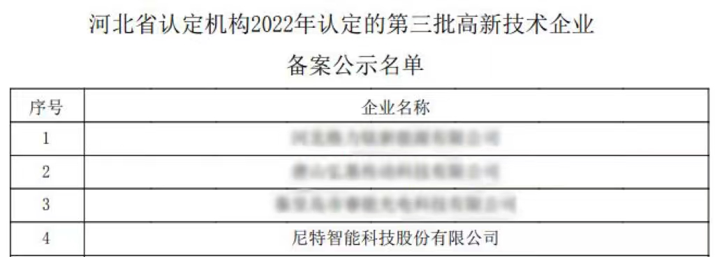 成立以來,尼特多次通過高新技術(shù)企業(yè)認(rèn)定。2022年再次獲得高新技術(shù)企業(yè)認(rèn)證,不僅是對(duì)尼特在技術(shù)創(chuàng)新、產(chǎn)品研發(fā)方面取得的成果的高度認(rèn)可,也充分說明了尼特在自主知識(shí)產(chǎn)權(quán)、技術(shù)創(chuàng)新研發(fā)的發(fā)展水平,對(duì)進(jìn)一步推動(dòng)技術(shù)創(chuàng)新工作,提升自主研發(fā)管理能力,加速技術(shù)成果轉(zhuǎn)化,提高核心競(jìng)爭力和可持續(xù)發(fā)展能力具有重要意義,為進(jìn)一步貫徹尼特“創(chuàng)新驅(qū)動(dòng)發(fā)展”發(fā)展戰(zhàn)略奠定堅(jiān)實(shí)基礎(chǔ)。