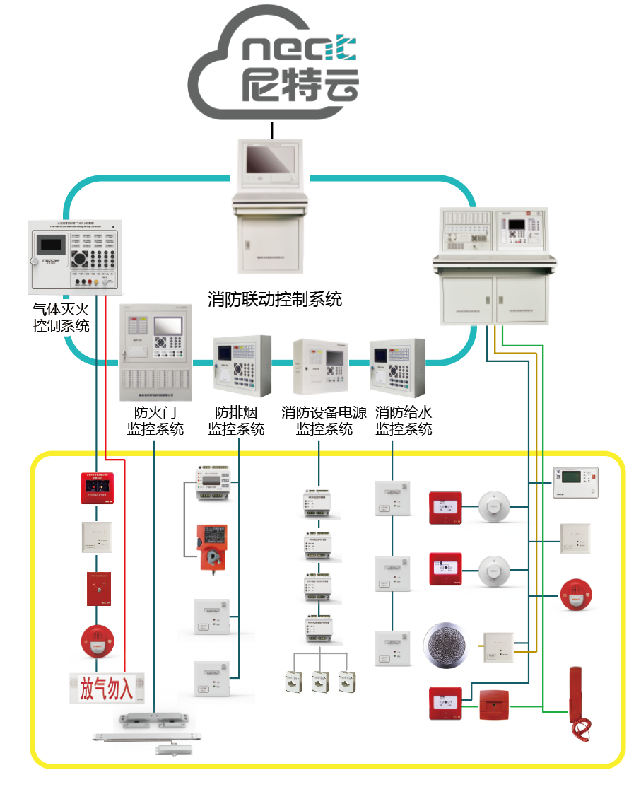 解決方案:以“目標管理,節點管控”為抓手,尼特項目團隊提前與施工方進行了積極溝通,在反復交流深入對接項目需求后,基于自主研發的NT-BUS總線通信技術,將火災自動報警及消防聯動控制系統、電氣火災監控系統、消防電源監控系統、防火門監控系統、可燃氣體探測報警系統高度集成,提升了各系統產品在使用過程中的抗干擾能力,保證了設備聯網穩定運行,并通過不斷加強對規范的深入研究和與消防檢測及驗收人員深入溝通,保證了消防驗收順利通過。