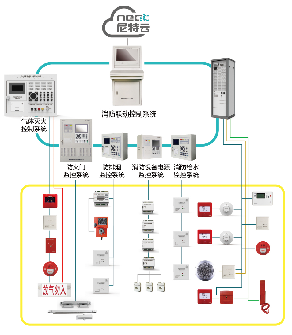 由于烏海機場各樓距離相對較遠,消防設施數量多、分布廣、種類繁雜、系統龐大,為消防安全系統改造工作帶來極大挑戰,要求作為消防設施核心的火災報警控制系統應具備聯動功能強、硬件容量大、報警控制快速準確、系統高穩定可靠等特點。在經過重重篩選與考量后,烏海機場對尼特高度集成的消防電氣系統解決方案給予了極高認可,最終確定了尼特作為此次消防安全系統改造工程供應商。