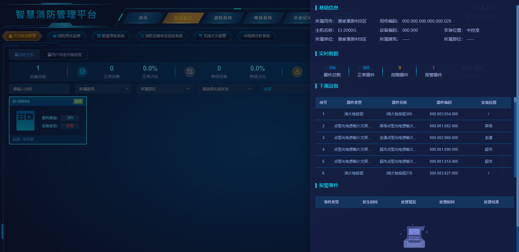 以用戶信息傳輸裝置進行遠程聯網監控,將原有的火災自動報警系統與智慧消防系統進行對接,實時采集各種火災報警、建筑消防設施運行狀態,提高了消防風險防控與預警水平。
