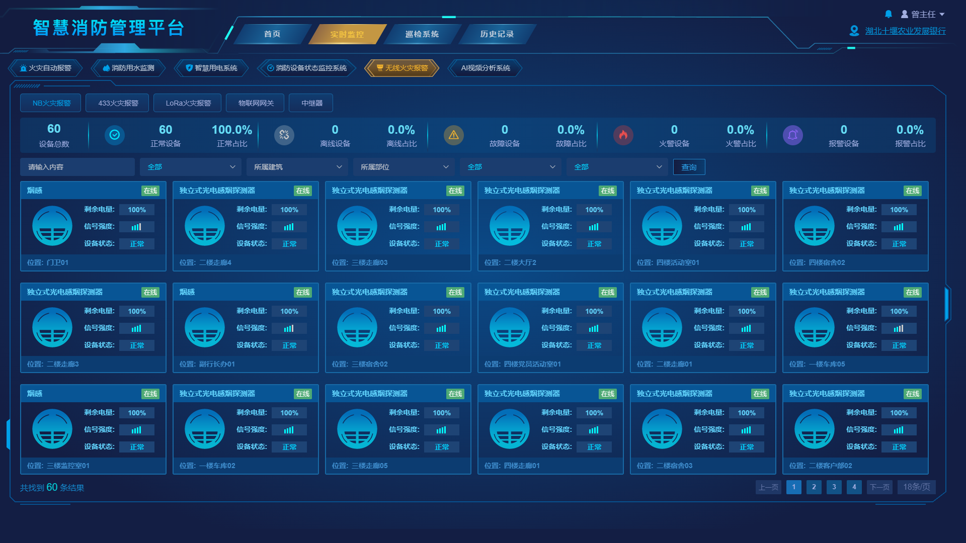 面對(duì)當(dāng)前持續(xù)多變得消防安全環(huán)境,金融機(jī)構(gòu)亟需乘勢(shì)而上加快智慧消防建設(shè)步伐,走出消防安全發(fā)展新路徑!為此,湖北十堰農(nóng)業(yè)發(fā)展銀行與尼特智能攜手,積極采用新興技術(shù)手段,利用智慧消防解決方案進(jìn)一步加強(qiáng)了分行及支行網(wǎng)點(diǎn)消防安全體系管理。