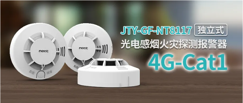 本次解決方案,應用的是尼特智慧消防無線聯網型NT8117獨立式感煙火災探測報警器,采用行業領先的4G Cat.1技術,內置全網通通訊模組,在4G基站覆蓋范圍內,均可實現高數據量承載,產品在線率高,當探測到火災發生,它會自動發出警報提示險情,并支持電話、短信、APP、網頁等多重預警方式,為撲救火災、疏散逃生爭取更充足的時間。
