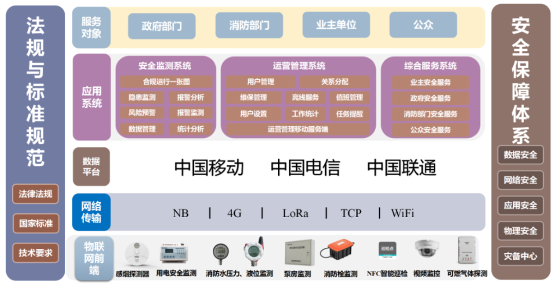 通過物聯(lián)網(wǎng)設施設備,對消防安全系統(tǒng)等進行實時監(jiān)控,分析隱患風險并進行預測預警。