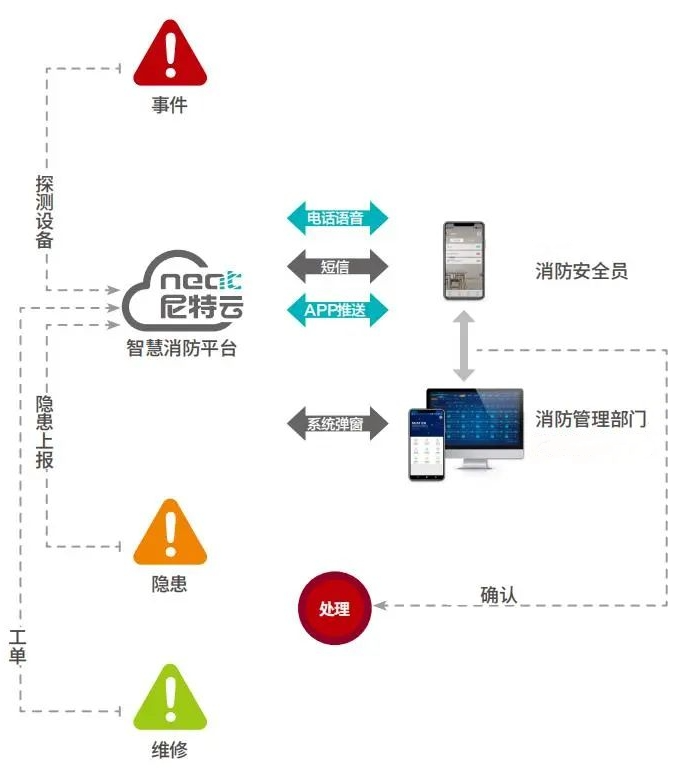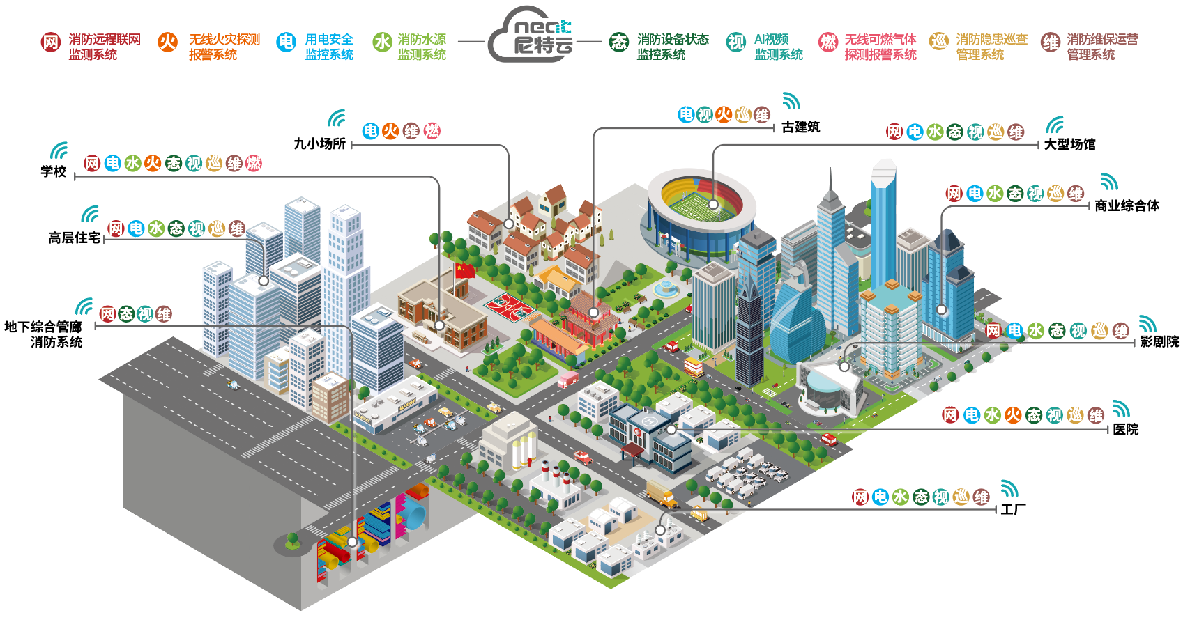 消防安全作為公共安全的重要組成部分,物聯(lián)網(wǎng)、大數(shù)據(jù)、云計算等新興技術正不斷推動著消防安全系統(tǒng)智能化升級。尼特智能于2016年立項智慧消防技術研究,依托自主研發(fā)的尼特云智慧消防管理平臺,打造了全方位、場景化智慧消防解決方案,實現(xiàn)了消防安全事項“上報-處置-反饋-核查”的全流程管理模式,為消防監(jiān)督提供重要的信息支持。