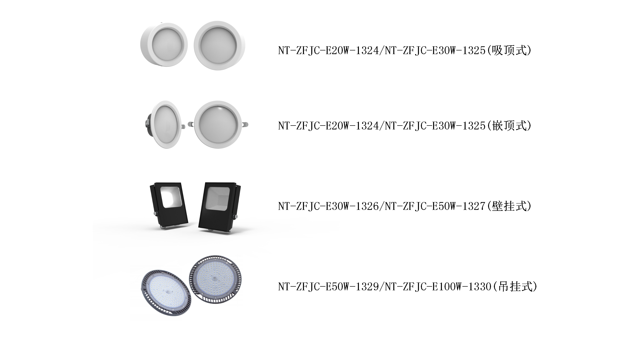 打造了20W\30W\50W\100W多種類別燈具,支持壁掛、吸頂、吊裝、嵌頂等多種安裝形式,滿足工廠車間、地鐵車站、會展中心、機場、體育中心等高大空場所疏散安全需求,兼具日常照明功能。