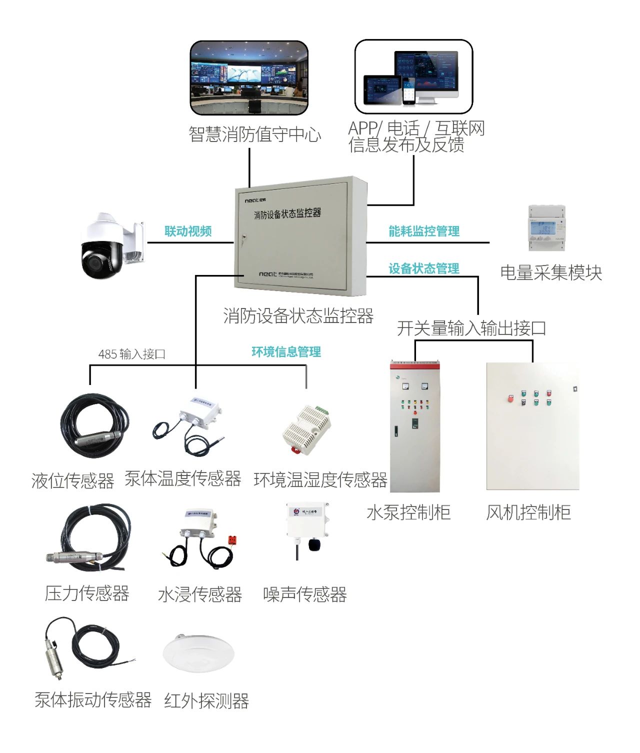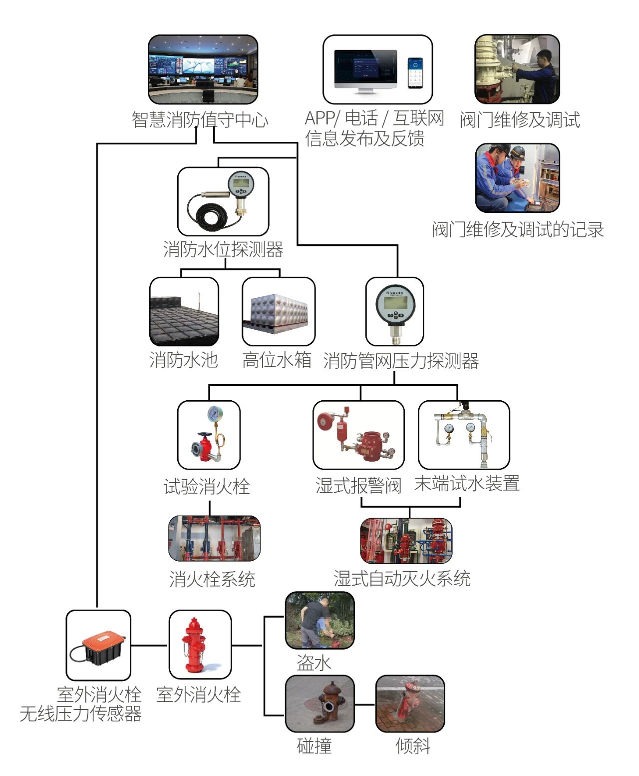 在高位水箱、消防水池、噴淋系統(tǒng)的末端試水裝置及室內(nèi)外消火栓系統(tǒng)等關(guān)鍵部位安裝無線感知設(shè)備,實(shí)時(shí)探測消防栓、噴淋系統(tǒng)、高位水箱水位等數(shù)據(jù),快速識別消防水源異常及故障狀態(tài),實(shí)現(xiàn)對室內(nèi)消火栓管網(wǎng)、噴淋管網(wǎng)和室外消火栓管網(wǎng)的主動(dòng)管理,保證消防水箱、消防水池、消火栓的水位處于正常水平范圍內(nèi),確保消防水源正常使用。
