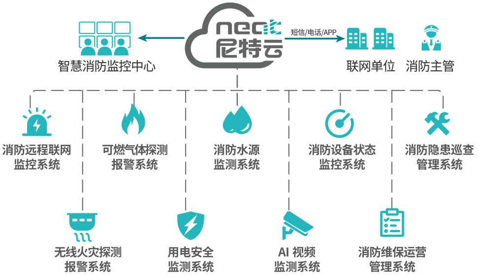 在《意見》中明確指出,鄉(xiāng)鎮(zhèn)(街道)和村(社區(qū))應(yīng)在相關(guān)部門指導(dǎo)下建立風(fēng)險隱患“一張圖”,暢通預(yù)警信息發(fā)布和傳播渠道。消防安全風(fēng)險隱患是生產(chǎn)生活中必須要注意的方面,也是提升基層應(yīng)急管理能力的重要一環(huán)。作為國內(nèi)較早從事物聯(lián)網(wǎng)消防系統(tǒng)研究的企業(yè),尼特智能歷經(jīng)多年的市場探索和經(jīng)驗總結(jié),綜合運用大數(shù)據(jù)、云計算、無線傳感等技術(shù),搭建了一套安全、可靠的智慧消防解決方案,將“人防、物防、技防 ”三結(jié)合應(yīng)用于消防管理和監(jiān)督中,實現(xiàn)消防管理工作智能化、可視化、痕跡化,切實滿足《意見》中關(guān)于進一步推動推動公共安全治理模式向事前預(yù)防轉(zhuǎn)型的工作內(nèi)容。