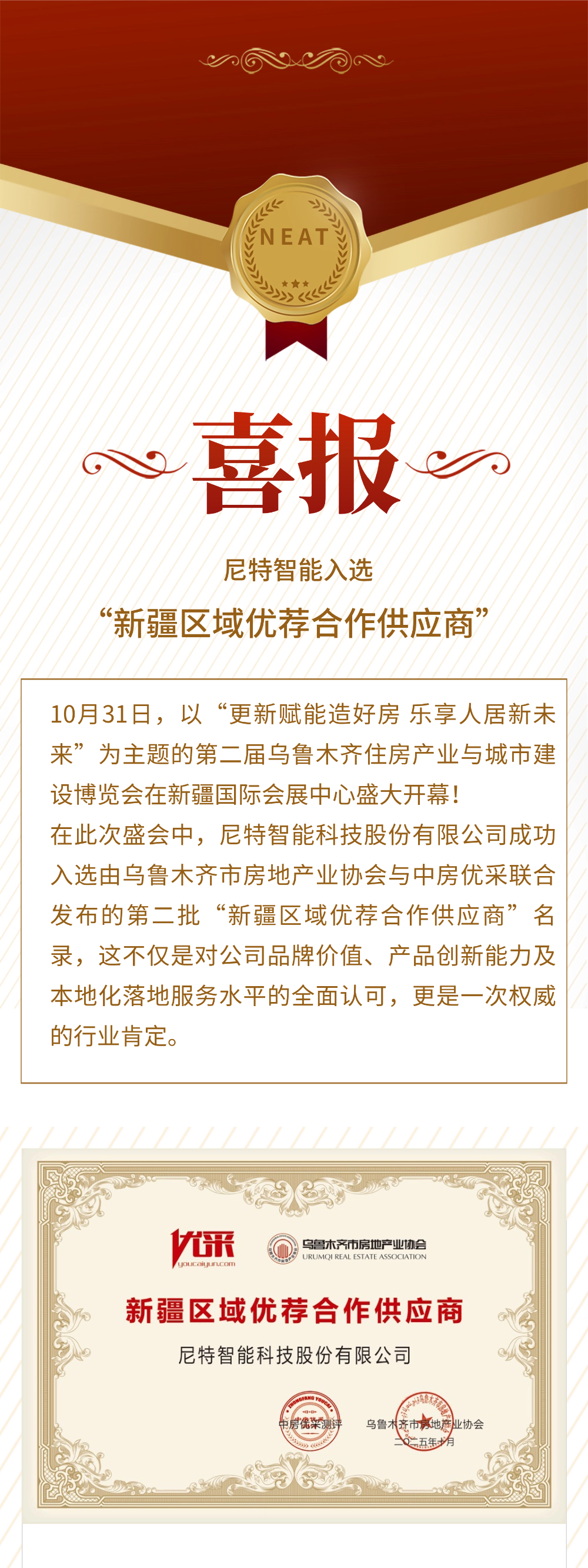 “好房子”離不開好消防!尼特智能入選“新疆區域優薦合作供應商”