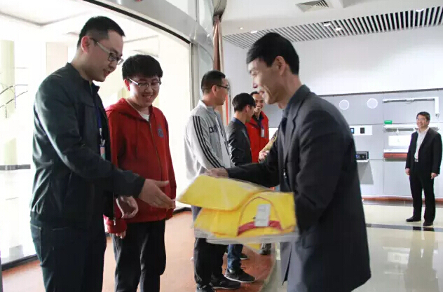 尼特信息科技有限公司副總經理林永強、尼特智能科技有限公司總經理張新忠為籃球友誼賽參賽員工頒獎。