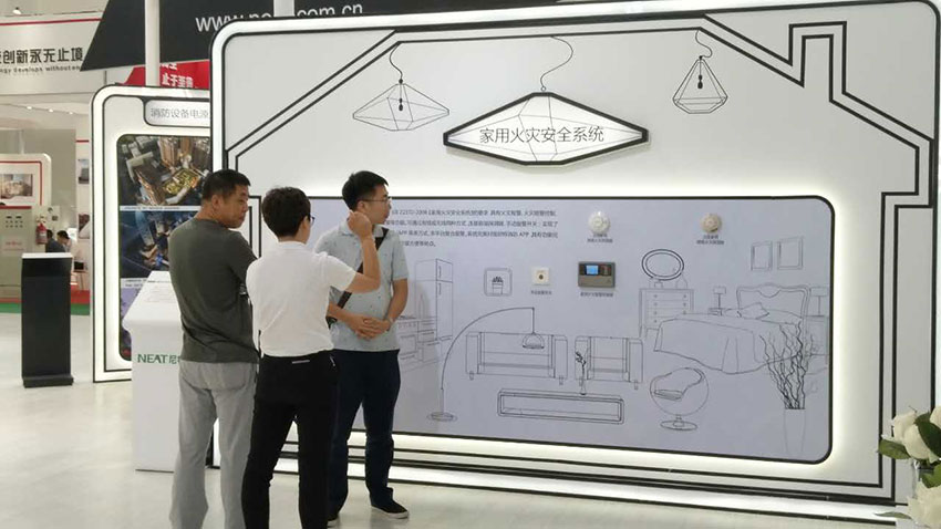 以往有消費者反饋,說時下的家用消防產品用途不是很大,原因是主人不在家,報警不知道。展會上,尼特特別針對這一普遍性需求開發出了新的家用火災報警控制器、家用火災探測報警器等組合式產品,該家用系列產品不僅具有無線聯網功能,還能將火警信息通過報警短信遠程發送給用戶,解決用戶報警不知情的問題。