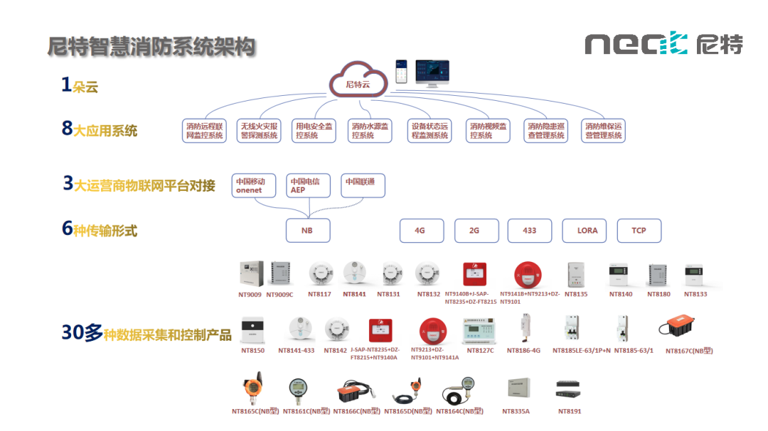 智能化是城市安全與消防技術結合的全新方向。在本次發布中,尼特全新升級了新一代尼特云4.0智慧消防管理平臺、無線火災報警探測系統、用電安全監控系統、設備狀態遠程監測系統、消防視頻監控系統,構建了更加完整的無線聯網型消防產品線,全面提升了用戶單位的消防安全保障能力。
