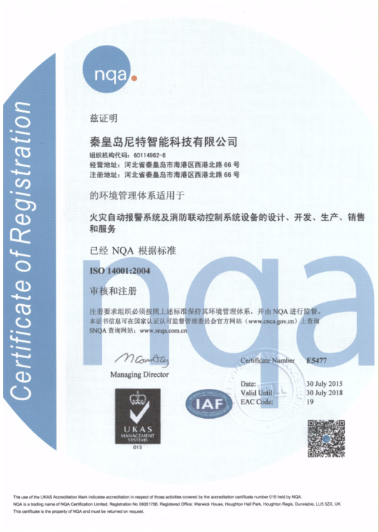 我公司自2015年7月7日開始環境體系認證工作,經過審核確定,公司的管理運作完全符合ISO14001:2004環境管理體系標準的要求,已于2015年7月30日正式通過國家標準...